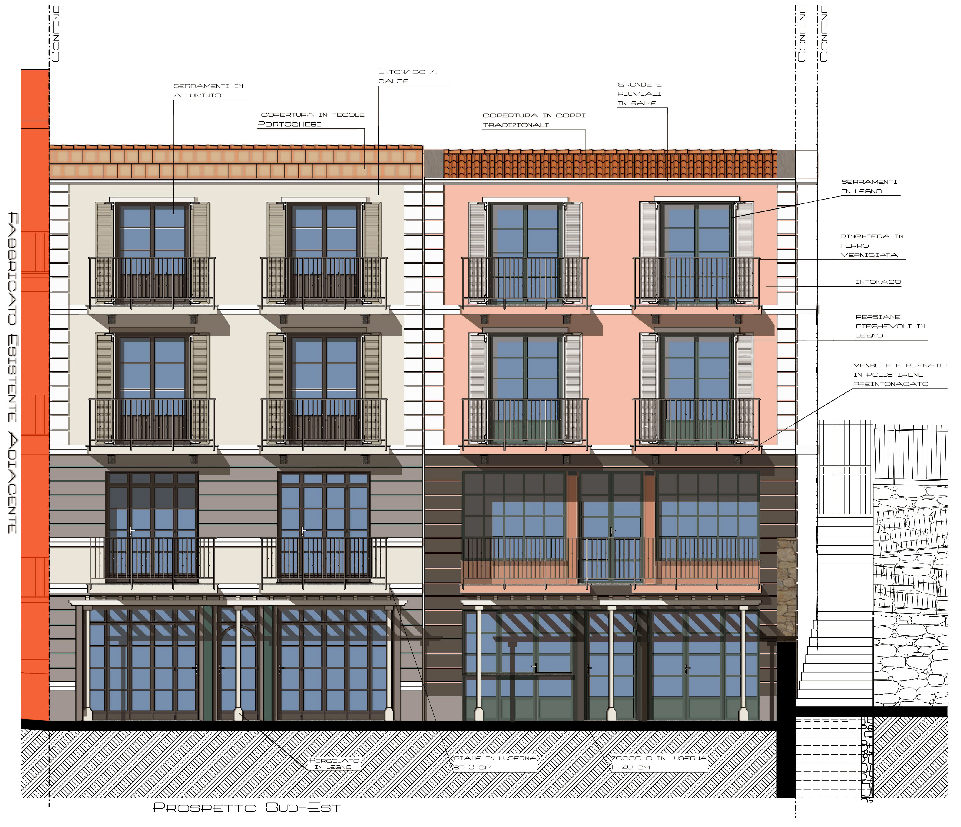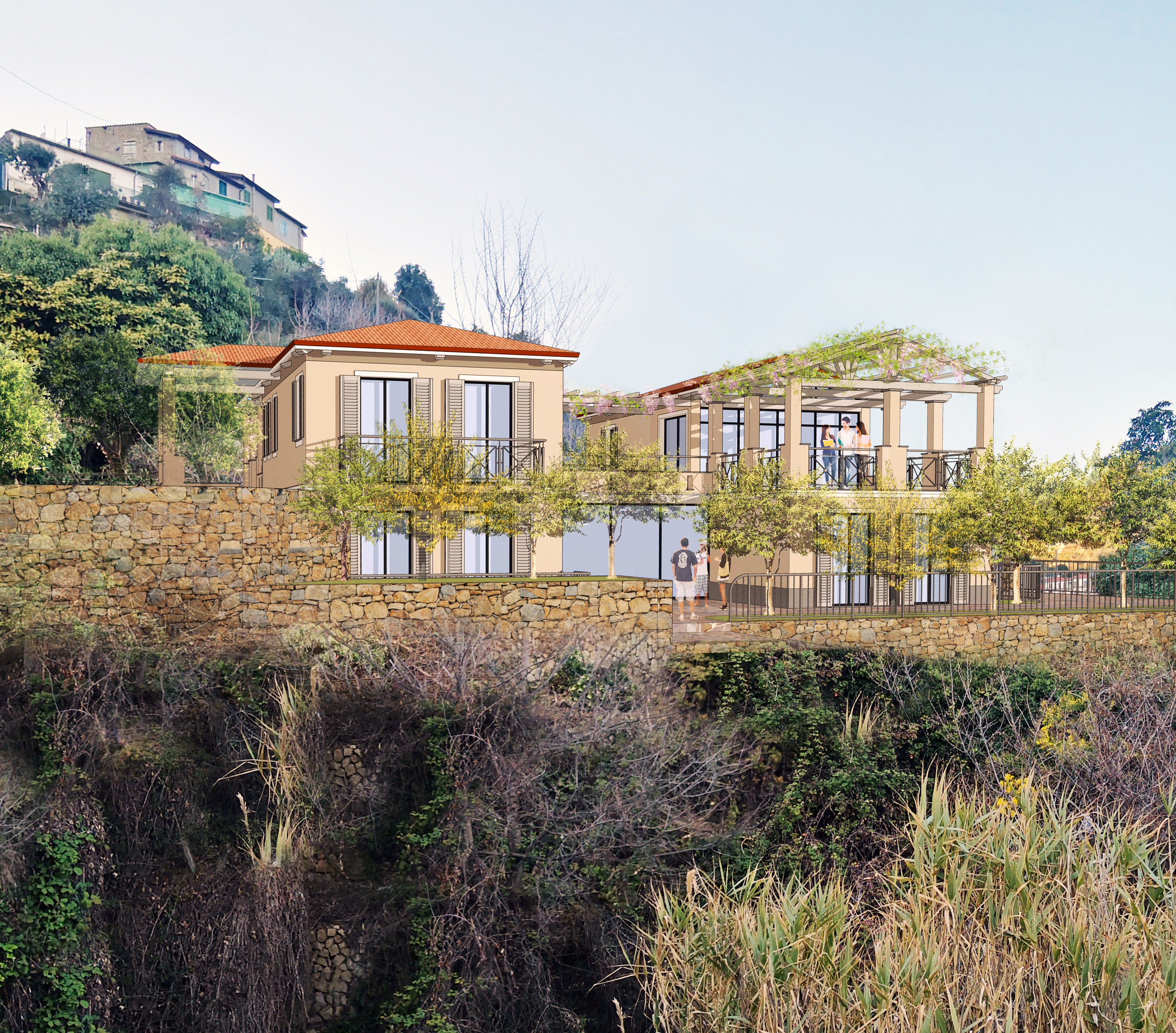 Progetto di diversi edifici residenziali ispirati all'architettura tradizionale ligure di origine agricola