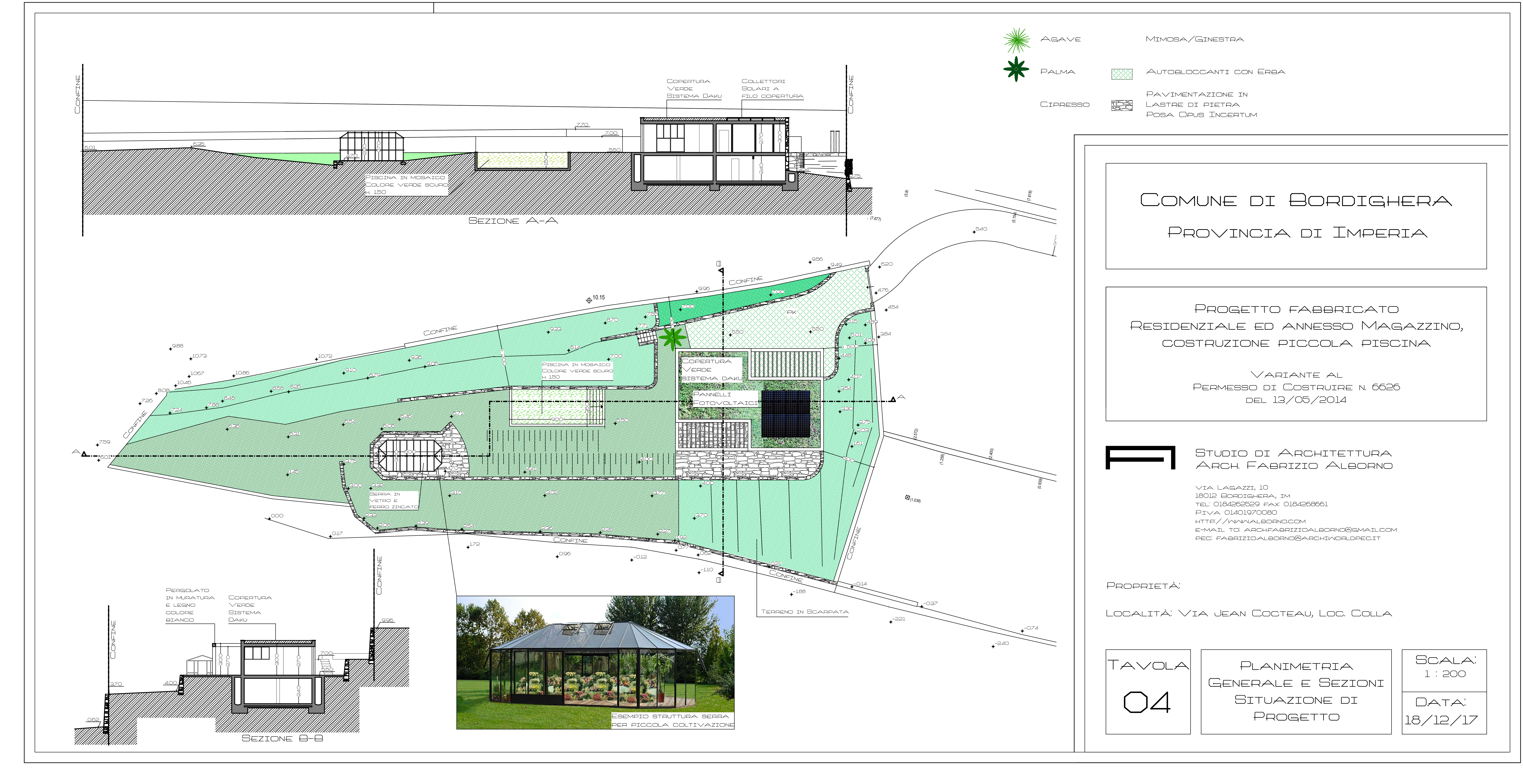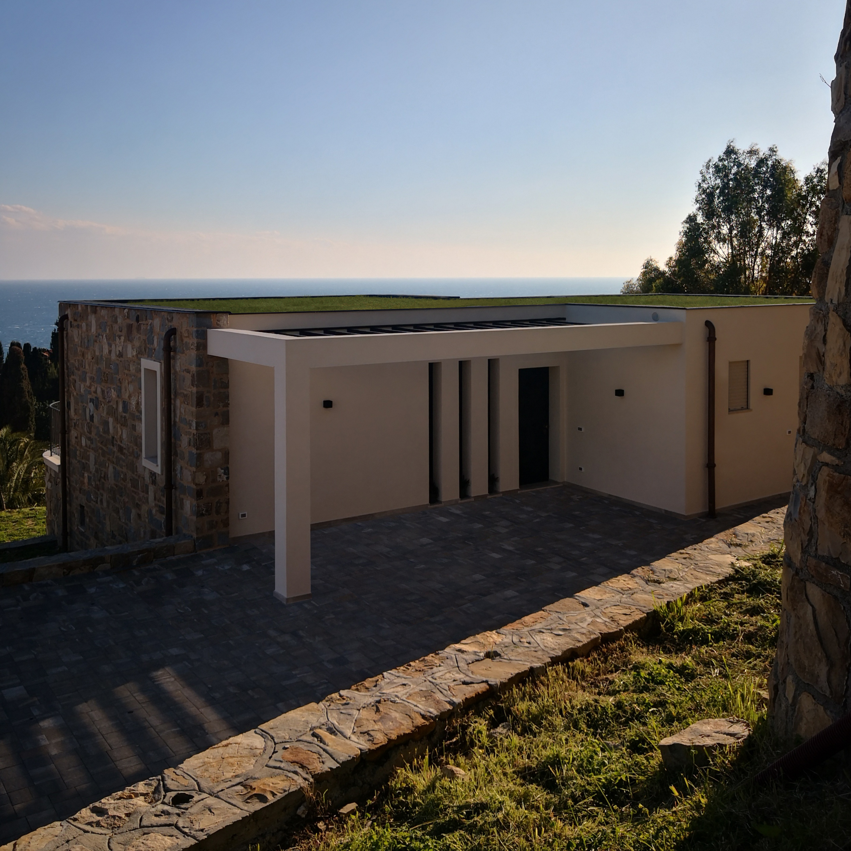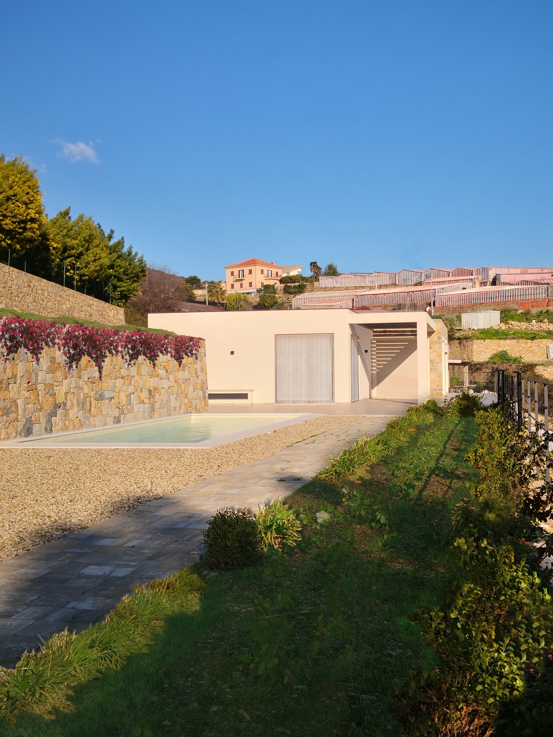 Progetto di edilizia residenziale sulla prima collina del Comune di Bordighera. Il progetto, dalle forme semplici e lineari, mira a fondersi con il terreno esistente, creando una perfetta integrazione ambientale con i tipici terrazzamenti locali.
