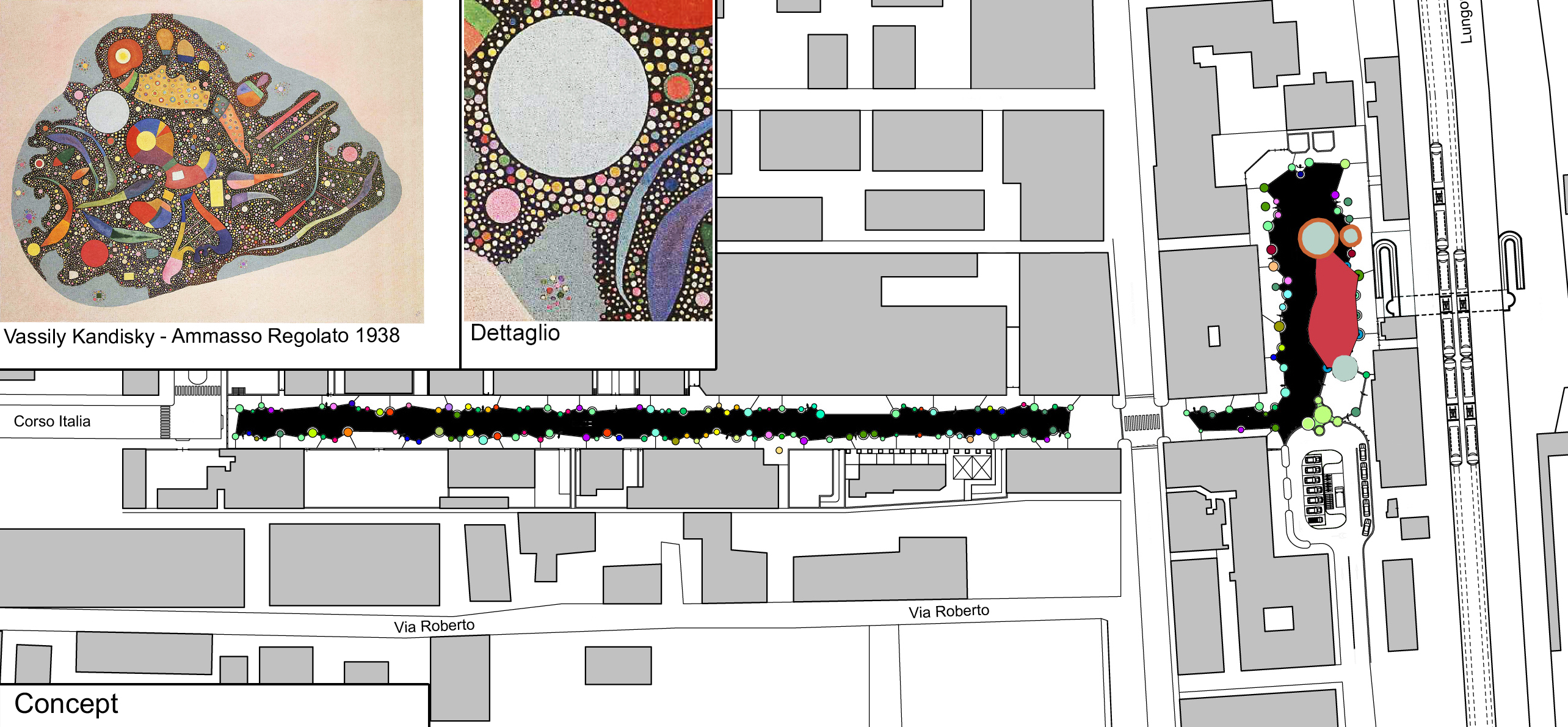 Il progetto trae ispirazione dall’opera “Ammasso Regolato” (Kandinsky, 1938):