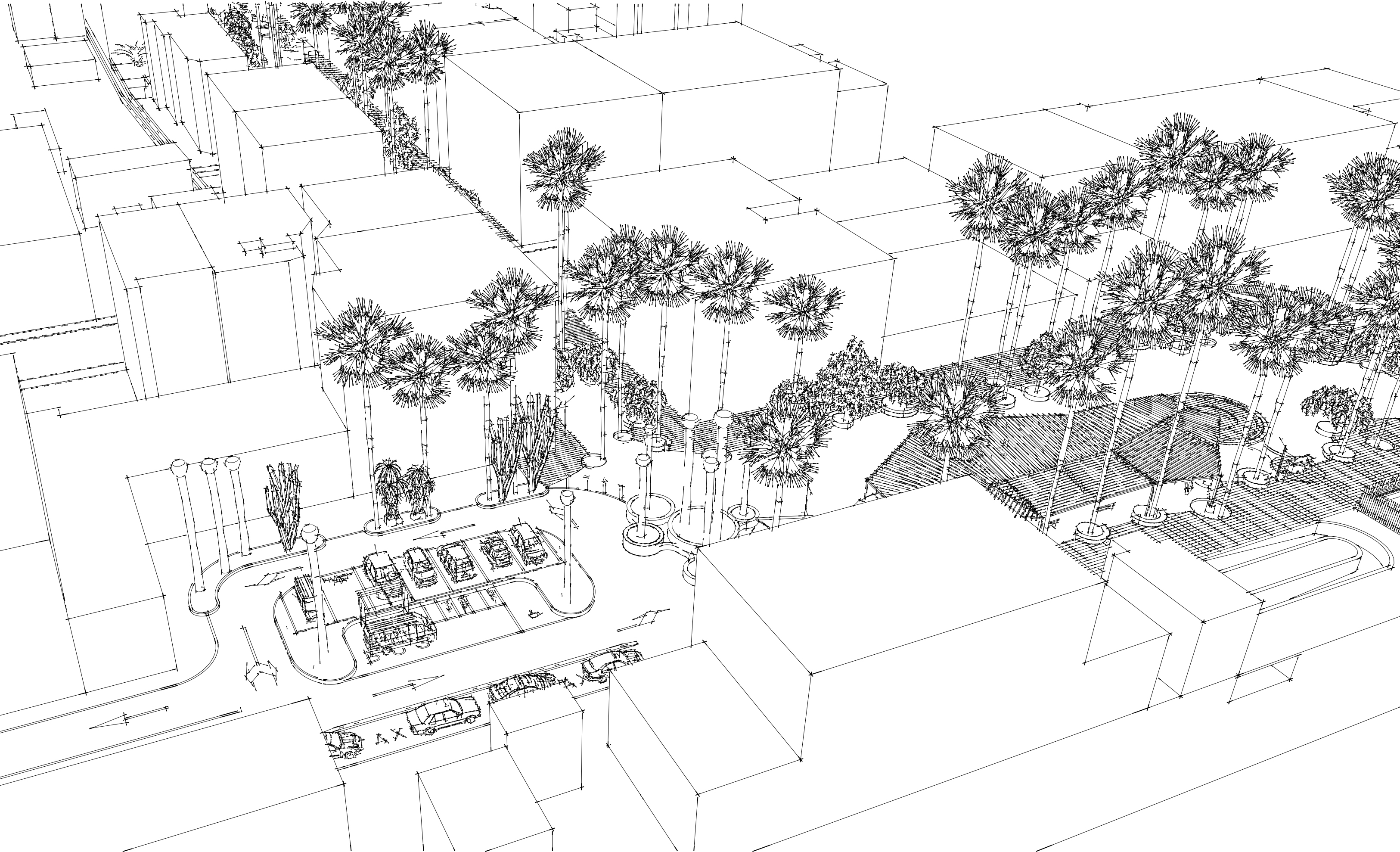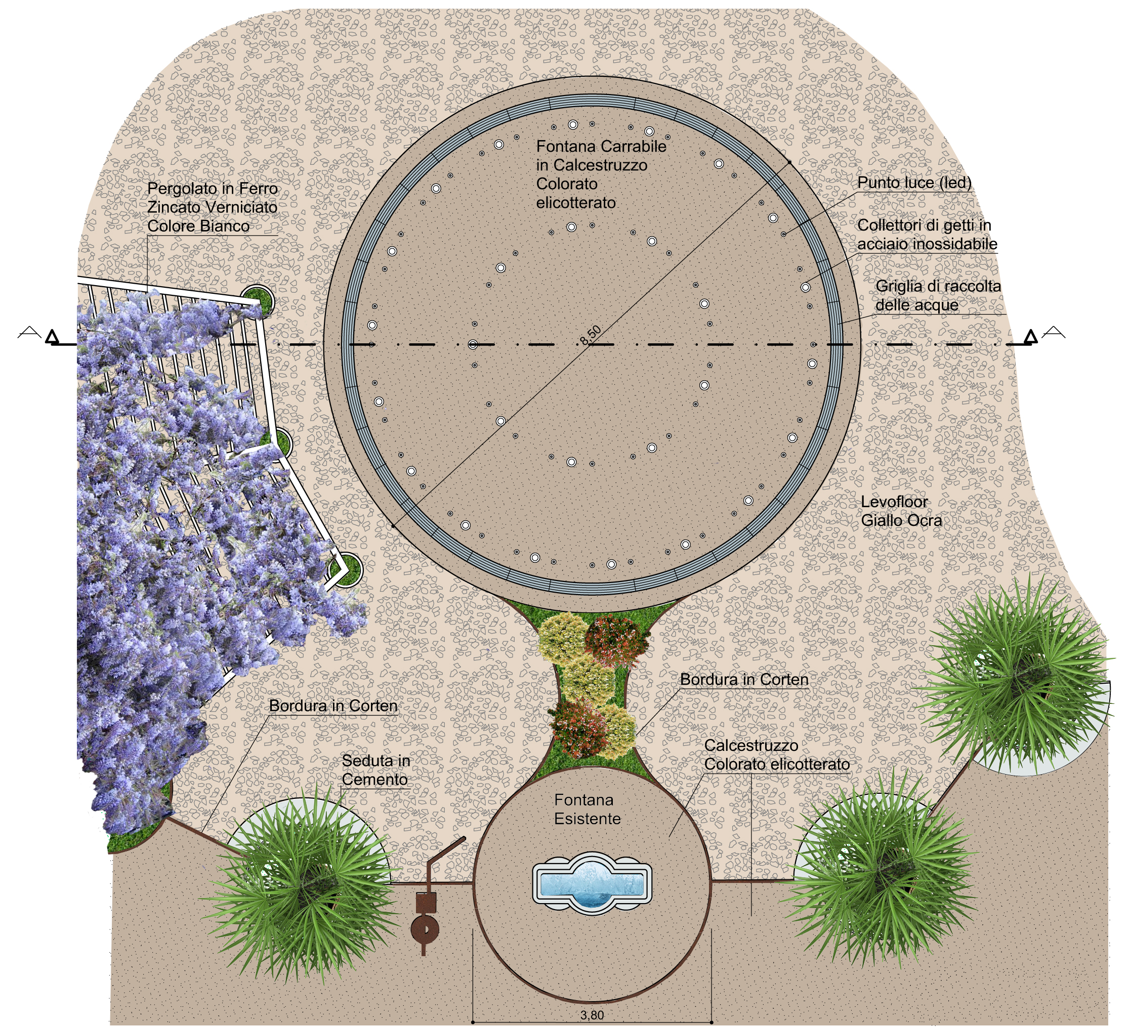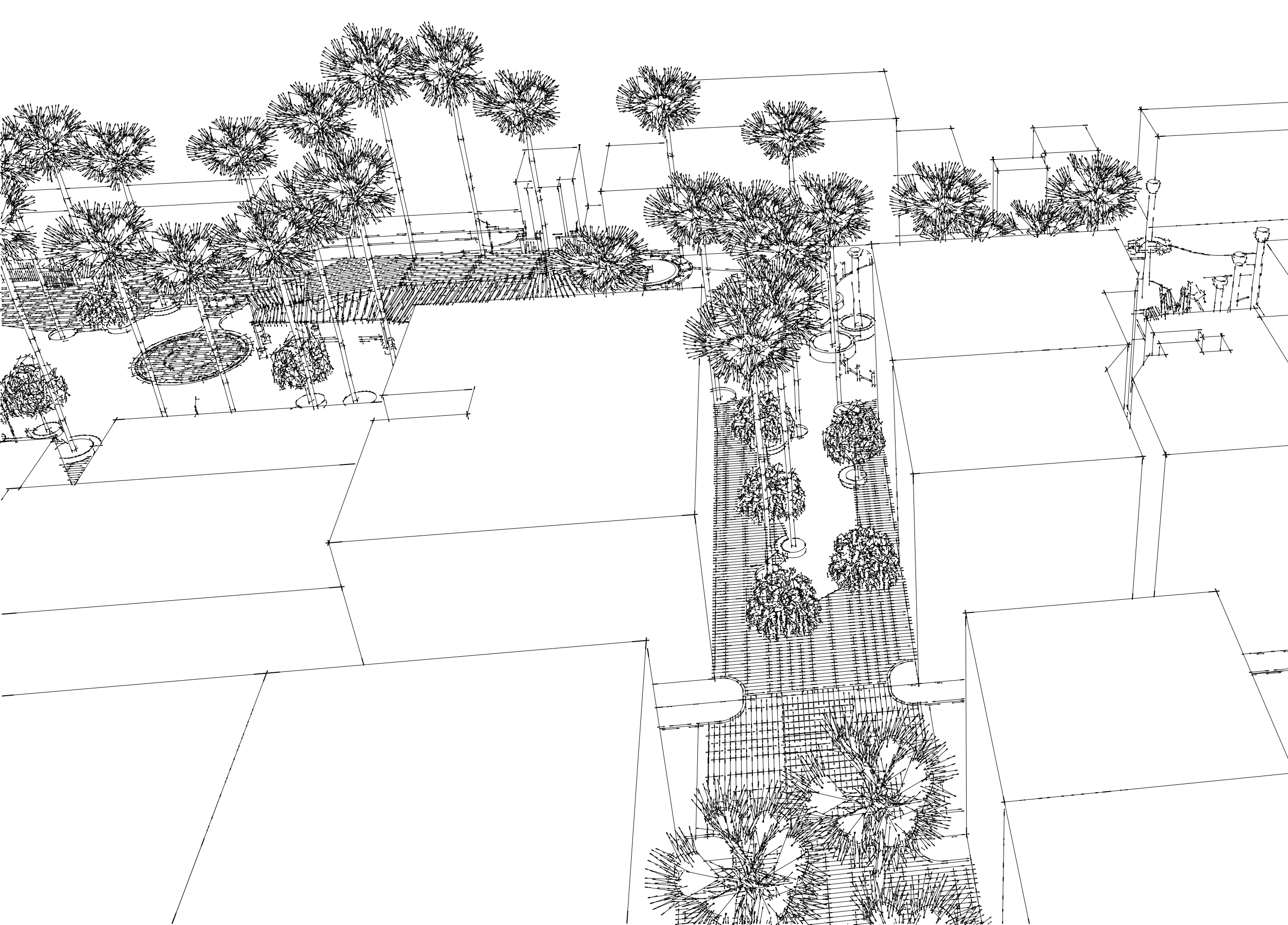 Introduzione di un impianto geometrico definito, capace di armonizzare gli elementi esistenti e ridurre il caos visivo.
