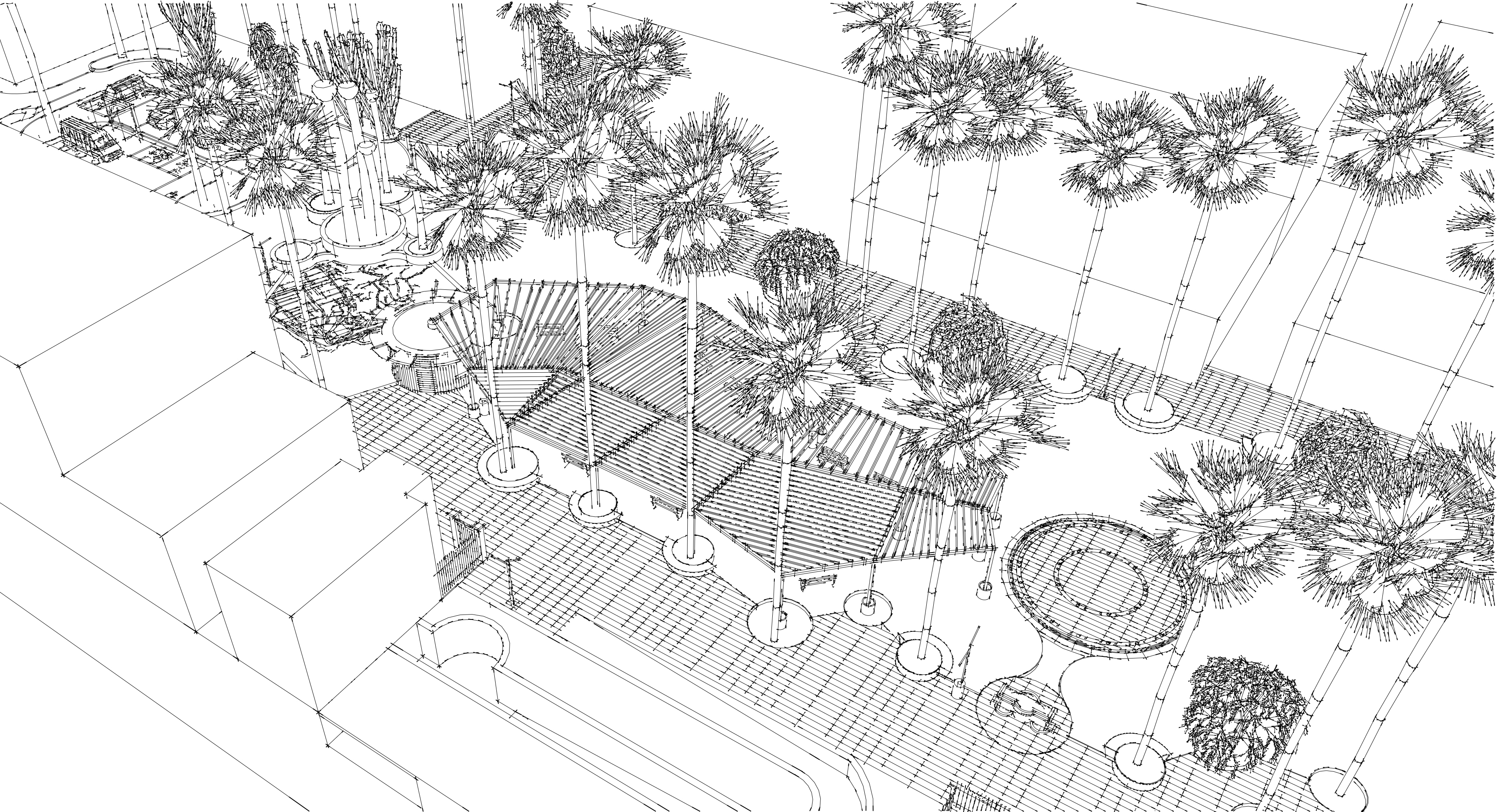 La composizione astratta del progetto agisce come una tela, inserendosi delicatamente tra i volumi esistenti e raccogliendo gli elementi urbani disordinati in un insieme unitario e facilmente percepibile.