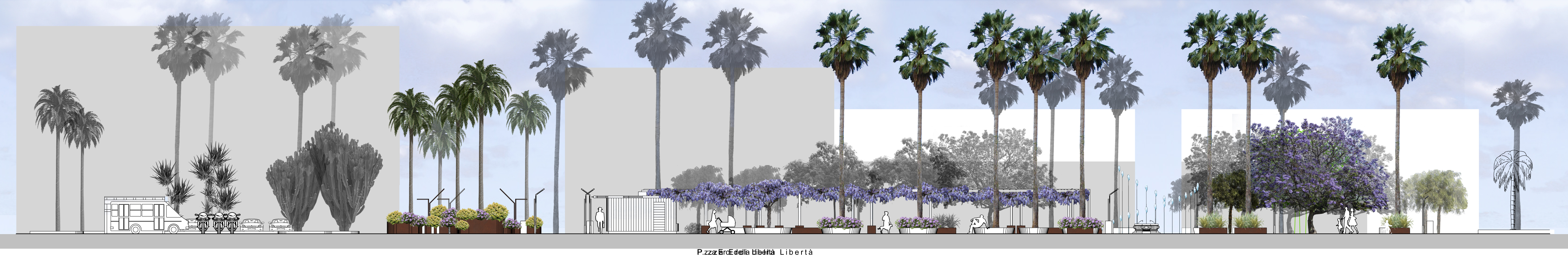 Piazza Eroi della Libertà: parcheggio principale della città, con accesso al mare tramite un sottopassaggio con rampe e scale, difficilmente fruibile da passeggini o sedie a rotelle. Nella piazza si trovano una vecchia edicola, una fontana storica attualmente “soffocata” dalle auto e un piccolo edificio abbandonato, ex ufficio turistico. La vegetazione è costituita da alte palme che limitano la visibilità del verde a livello pedonale.