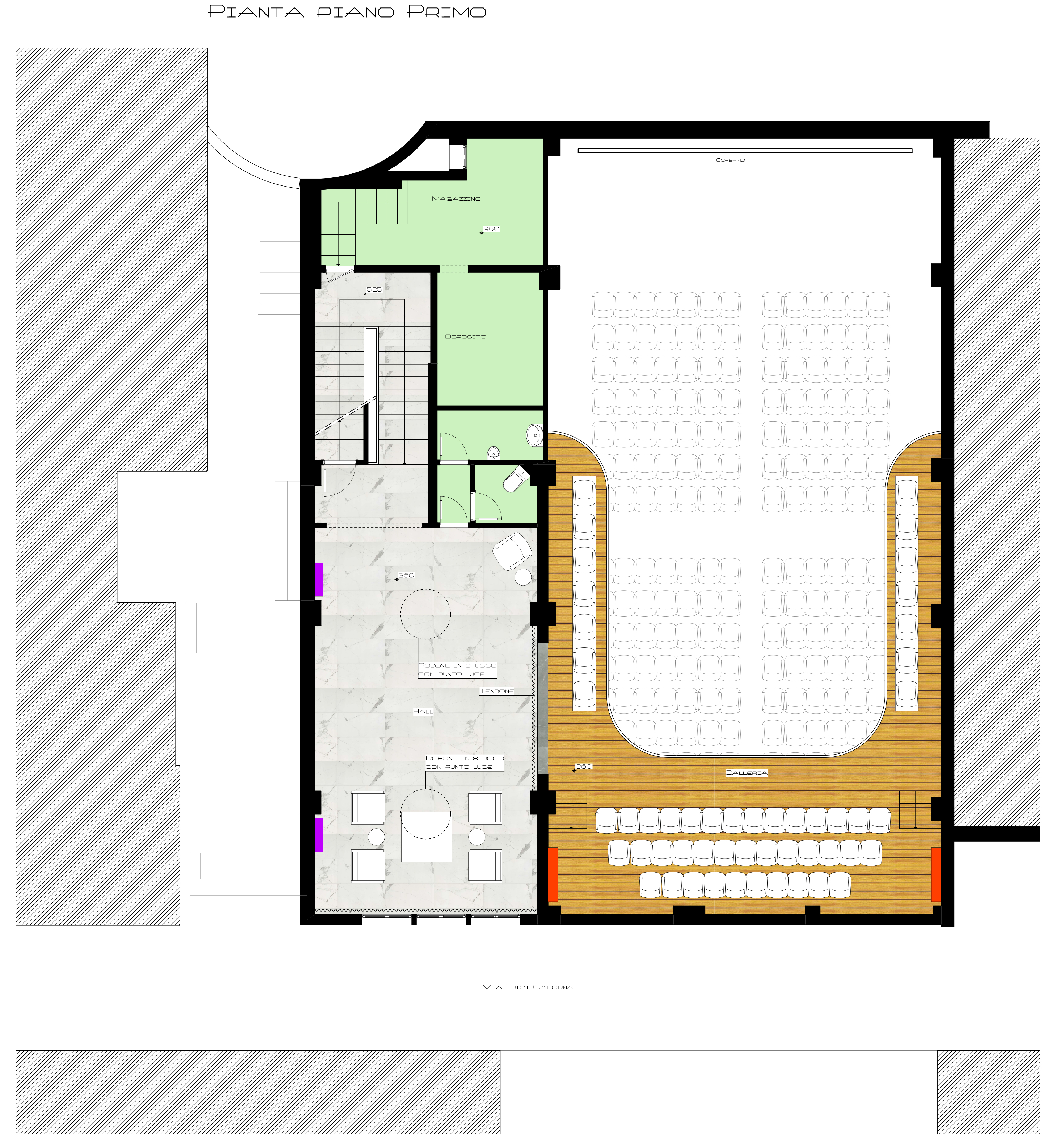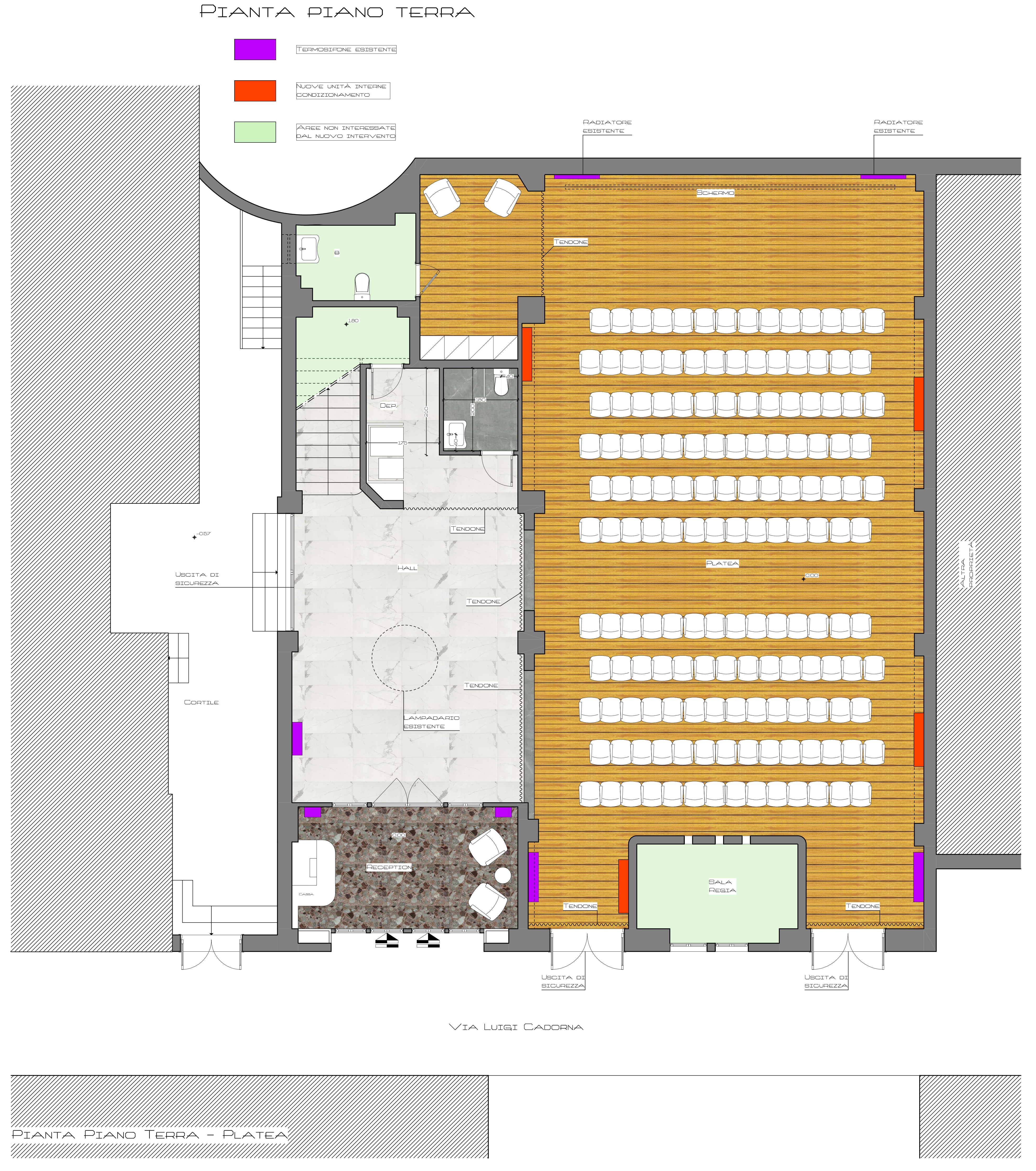 Piano terra: platea, hall, biglietteria e servizi igienici.