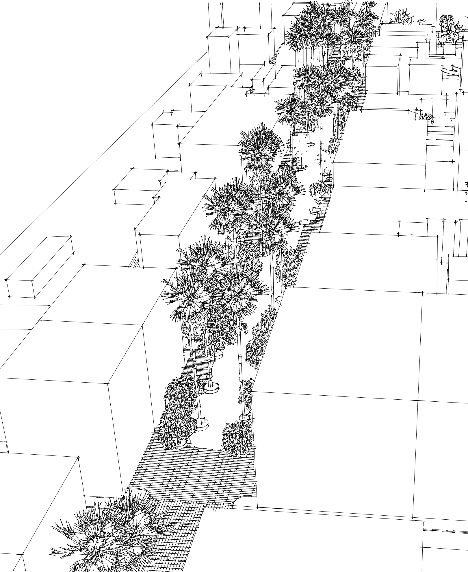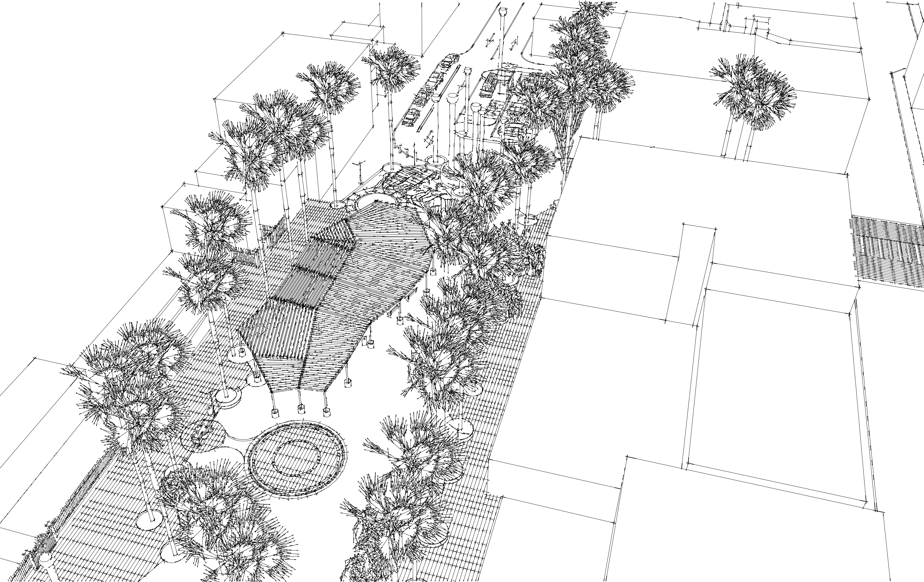 La composizione astratta del progetto agisce come una tela, inserendosi delicatamente tra i volumi esistenti e raccogliendo gli elementi urbani disordinati in un insieme unitario e facilmente percepibile.